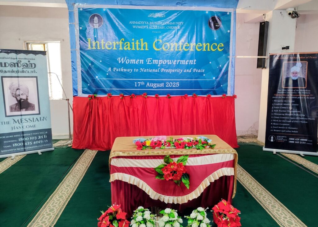 Lajna Imaillah (Ahmadi Muslim Women’s Auxiliary), Chennai, organised a conference on “Women Empowerment: A Pathway to National Prosperity and Peace” on 17 August 2025 at Masjid Mahmood, Kodambakkam. My humble self chaired the event, which was aimed at presenting the true teachings of Islam on women’s rights and empowerment, while encouraging and bringing together the voices of women from varied professional and social backgrounds. The programme sought to emphasise that women’s empowerment is a shared responsibility essential for national peace and prosperity.